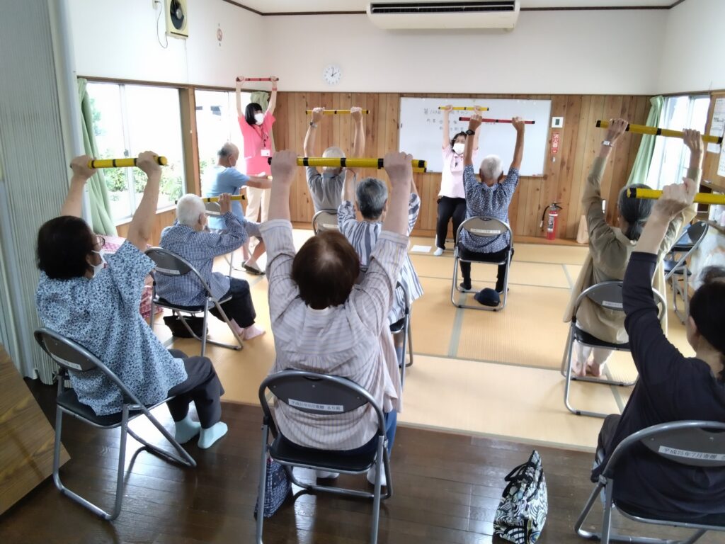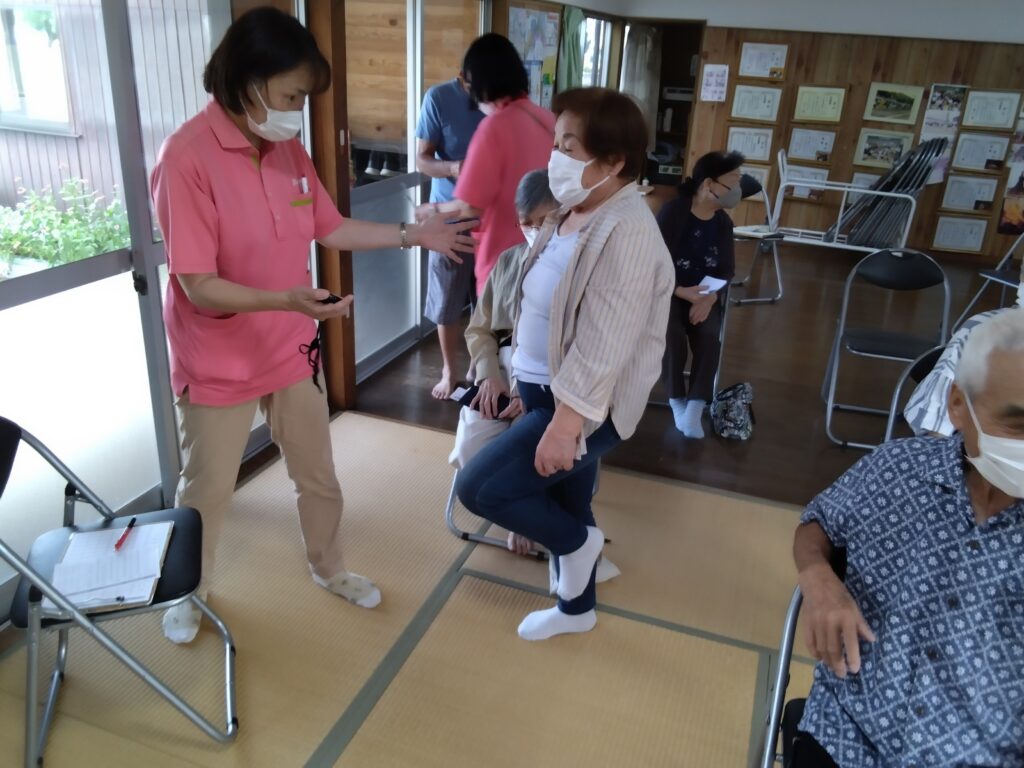 9月の地域サロン 2025.09.26 熊本の介護老人福祉施設・デイサービス「るり苑」 お知らせ 今回は体力測定を行いました。その前に棒体操を行っています。 体力測定はどの体力が高く、どの体力が低いのかを把握することができます。 定期的に測定することで現状の体力の把握と、適した運動内容を選択することができるようになります。 みなさん過去の計測結果と比較し一喜一憂されていました。 居宅介護支援事業所より