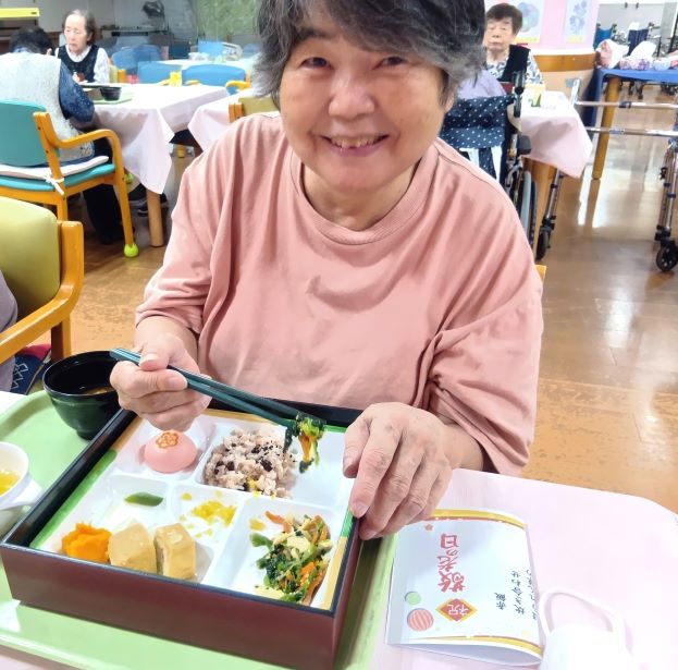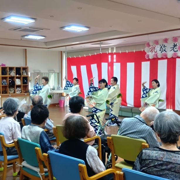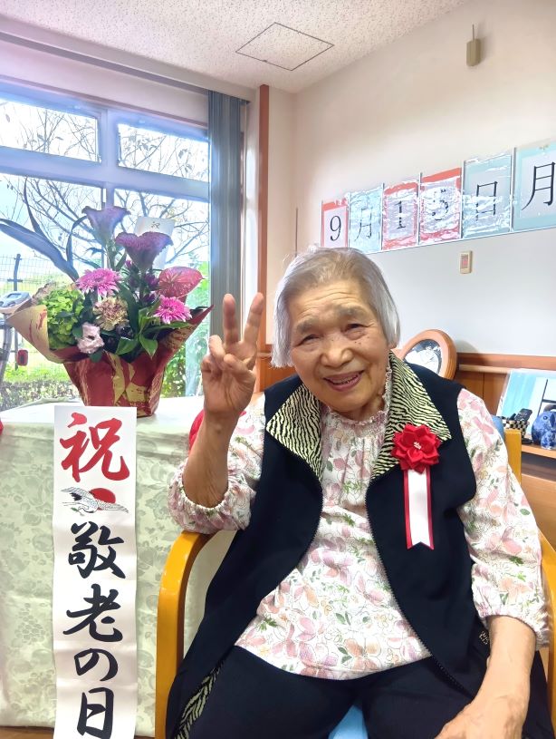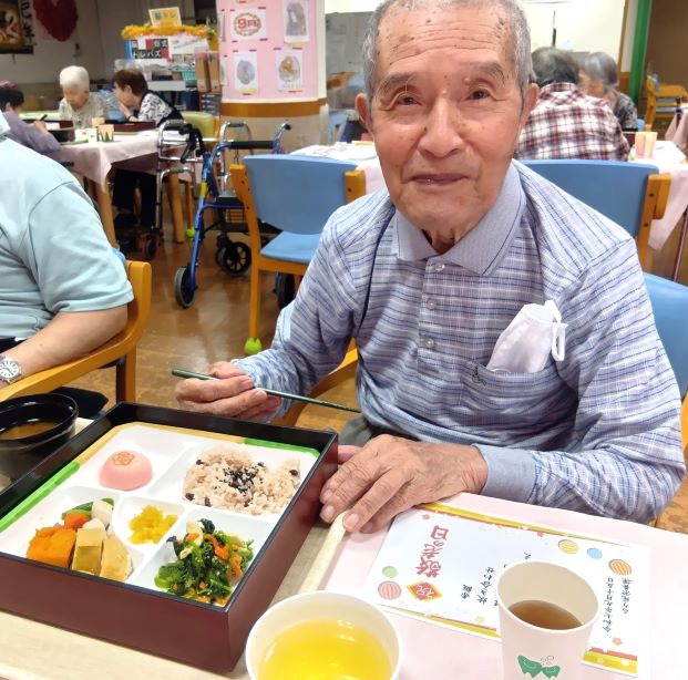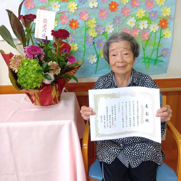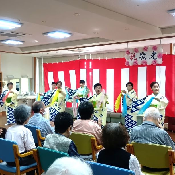 敬老会を行ないました。 2025.10.09 熊本の介護老人福祉施設・デイサービス「るり苑」 お知らせ 9月15日敬老の日に、敬老会を行いました! デイサービスでは、白寿1名、米寿2名、喜寿1名の計4名の方を表彰いたしました。 表彰の後は、熊本民謡会の皆様の舞踊を鑑賞し、 一緒に踊ったり、手拍子したりと楽しんでいただきました(^^) また、お昼ご飯には赤飯やお饅頭が入った松花堂弁当でした! 職員一同、皆様のご健康とご多幸を心よりお祈り申し上げます。