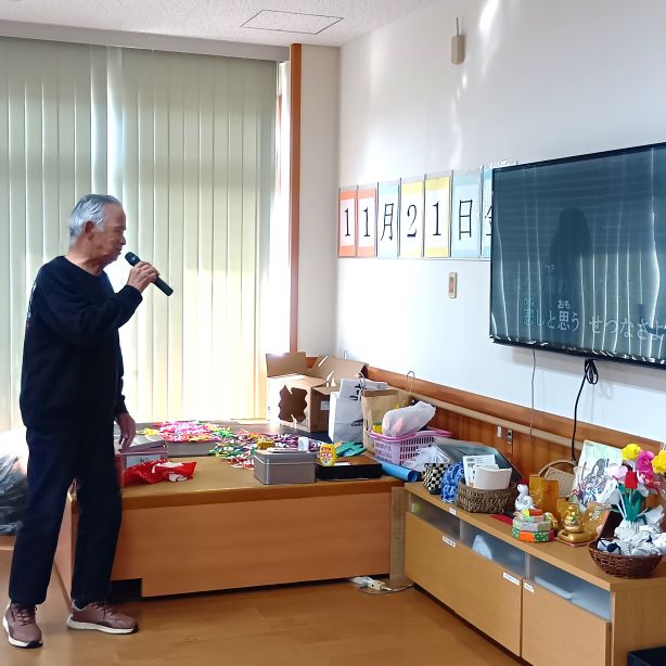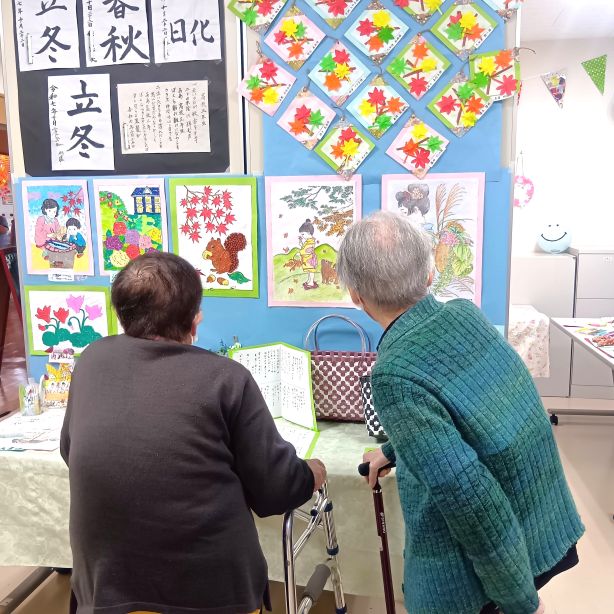 文化祭を行いました 2025.12.24 熊本の介護老人福祉施設・デイサービス「るり苑」 お知らせ 11月17日~11月22日でるり苑文化祭を行いました。 皆様から募集した作品や、製作活動で作っていただいた作品を展示しました! どの作品も素晴らしく、皆様感動されていました。 デイサービスでは、11月21日に文化際発表会を行い、 ハーモニカや大正琴の演奏、舞踊、ソロ歌唱など皆様それぞれの特技を披露していただきました! 皆様の笑顔が見れて職員も元気をいただきました(^^) 12月はクリスマス会を予定しています!お楽しみに~!