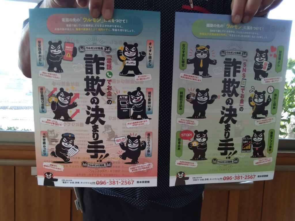 今回は熊本東警察署 生活安全課 鶴田警部補による「詐欺被害について」話をしていただきました。