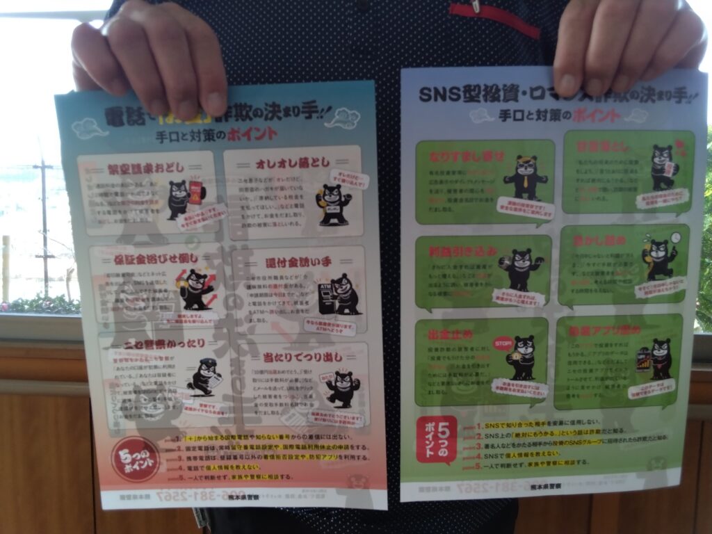 10月末まで管内での電話でのお金の詐欺については46件、SNS型投資・ロマンス詐欺が24件で合計4億2千万円の被害金額だそうです。