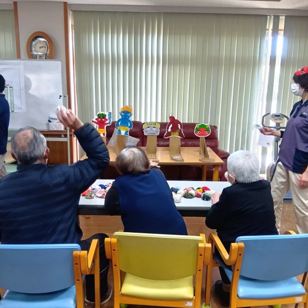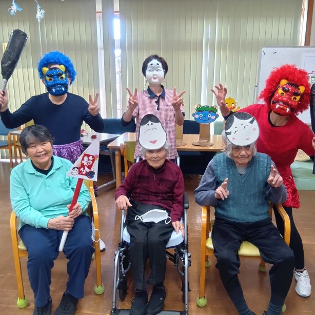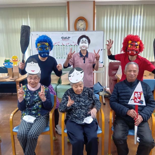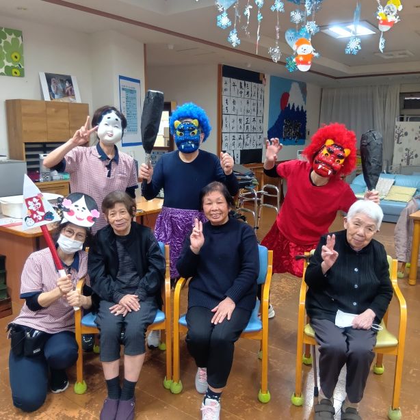 鬼は外!福は内! 2026.02.05 熊本の介護老人福祉施設・デイサービス「るり苑」 お知らせ デイサービスでは2月3日に節分のイベントを実施しました! まずは、「まめまき」の歌に合わせて準備体操! その後は、鬼の的にボールを当てる『鬼は外!福は内!ゲーム』をチーム戦で行いました! 5体の鬼を倒していただくゲームですが1位のチームは制限時間に余裕を持って倒されていました。 そして、赤鬼と青鬼が登場!! 皆様にボールを投げて、退治していただきました。 今年1年皆様にたくさんの福が訪れますように。